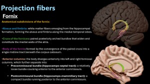 Fornix: The main output tract of the hippocampus, following a complex C-shaped trajectory around the thalamus.