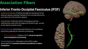 Inferior Fronto-Occipital Fasciculus (IFOF): The longest association tract, serving as the "What" stream for semantic processing.