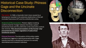 This tract gained fame through the case of Phineas Gage. When a tamping iron destroyed this connection, Gage’s executive "city" (frontal lobe) could no longer regulate his emotional "city" (limbic system), transforming his personality from a reliable foreman to an irreverent, impulsive man.