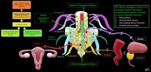 The inferior hypogastric plexus is a key structure to examine in patients with common pelvic malignancies because it innervates major pelvic organs through the vesicoureteric plexus, the rectal plexus, the uterovaginal plexus in female patients, and the prostatic plexus in male patients.