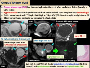 - Corpus luteum cyst (CLC) is a hemorrhagic retention cyst after ovulation. Hypervascular functional epithelium of thick luteinized cell layer may be easily hemorrhagic
