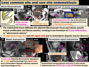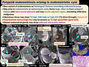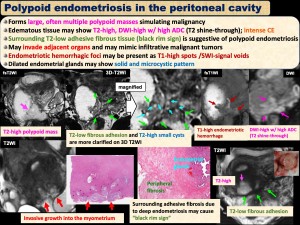 - Surrounding T2-low adhesive fibrous tissue (black rim sign) is suggestive of polypoid endometriosis