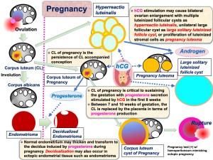 - Occasionally, CL of pregnancy forms CLC, during 1st trimester and shrinks at 2nd trimester; May cause rupture or torsion