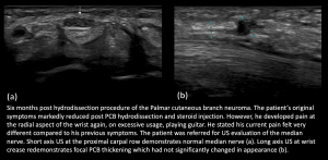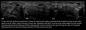 Fig 14: POST CTR SURGERY PALMAR CUTANEOUS BRANCH (PCB) NEUROMA AND FCR TENOSYNOVITIS PCB neuroma and PCB hydrodissection with steroid injection