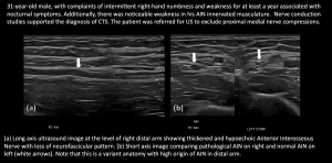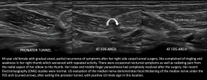 Fig 9: COMPRESSION UNDER FDS ARCH - Charcot Marie Tooth Disease with superimposed Bilateral Double Crush Syndrome: Compression at Pronator Tunnel and Carpal Tunnel