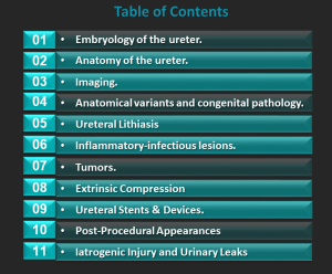 Although ureterolithiasis is the most frequent and urothelial carcinoma the most important differential diagnosis for ureteral lesions, different entities may involve the ureter. We review imaging findings, with clues to interpretation, and provide pathologic correlation. We will highlight how pathologic correlation informs imaging interpretation.
