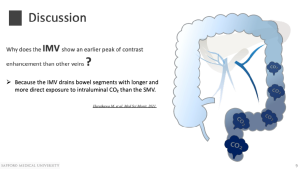 This difference reflects anatomical drainage patterns: the IMV drains bowel segments directly exposed to CO₂, whereas the SMV primarily drains the small intestine and right colon.
