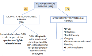 Retroperitoneal fibrosis (RPF) is a rare fibroinflammatory condition, causing fibrotic tissue deposit around the aorta, with potential extension to the retroperitoneum and surrounding structures.