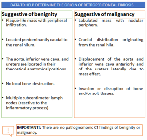 - Usually more focal or asymmetric compared to retroperitoneal fibrosis.