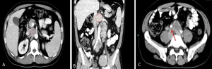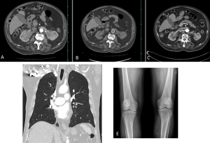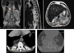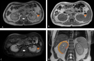Although most cases present microscopically with homogeneous hepatosplenomegaly, macroscopic EMH may appear at several sites, including the thorax (most commonly as paraspinal masses), liver and spleen, and retroperitoneum, where it commonly appear as unilateral or bilateral soft-tissue masses, frequently involving the perinephric space [11]. These lesions typically form a soft-tissue rind without renal mass effect, with foci of fat-attenuation may be interspersed within the regions of soft tissue, and are hypovascular on post-contrast imaging. Calcifications are uncommon.