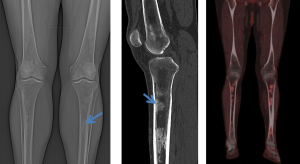 Skeletal involvement, particularly of the femur, tibia and fibula, is seen in most patients, often causing bone pain [9].